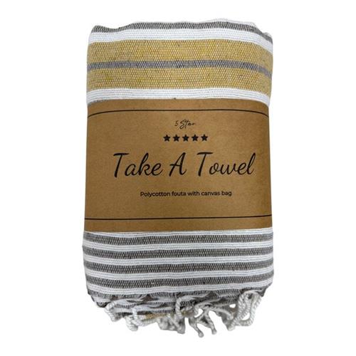 Polycotton Fouta met tas Guus 5, Geel 90x180cm