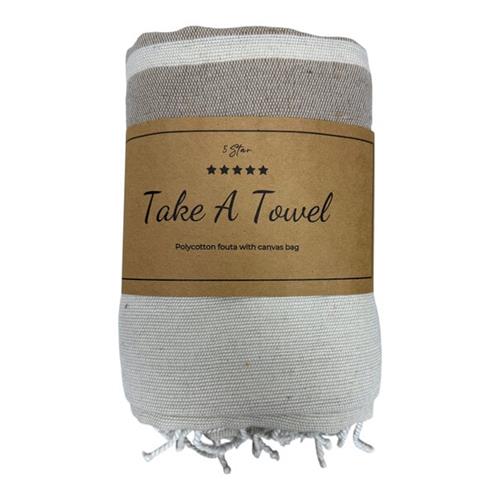 Polycotton Fouta met tas Guus 7, Bruin 90x180cm