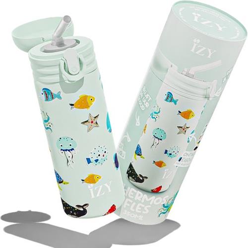 Thermosbeker – RVS – 6 uur lang warm – 350 ml – Kinderbeker – zeedieren